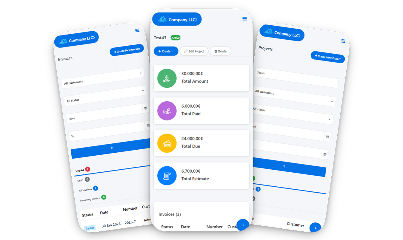 Create invoices and quotes in just a few clicks, with automatically filled-in data and unlimited customization options.